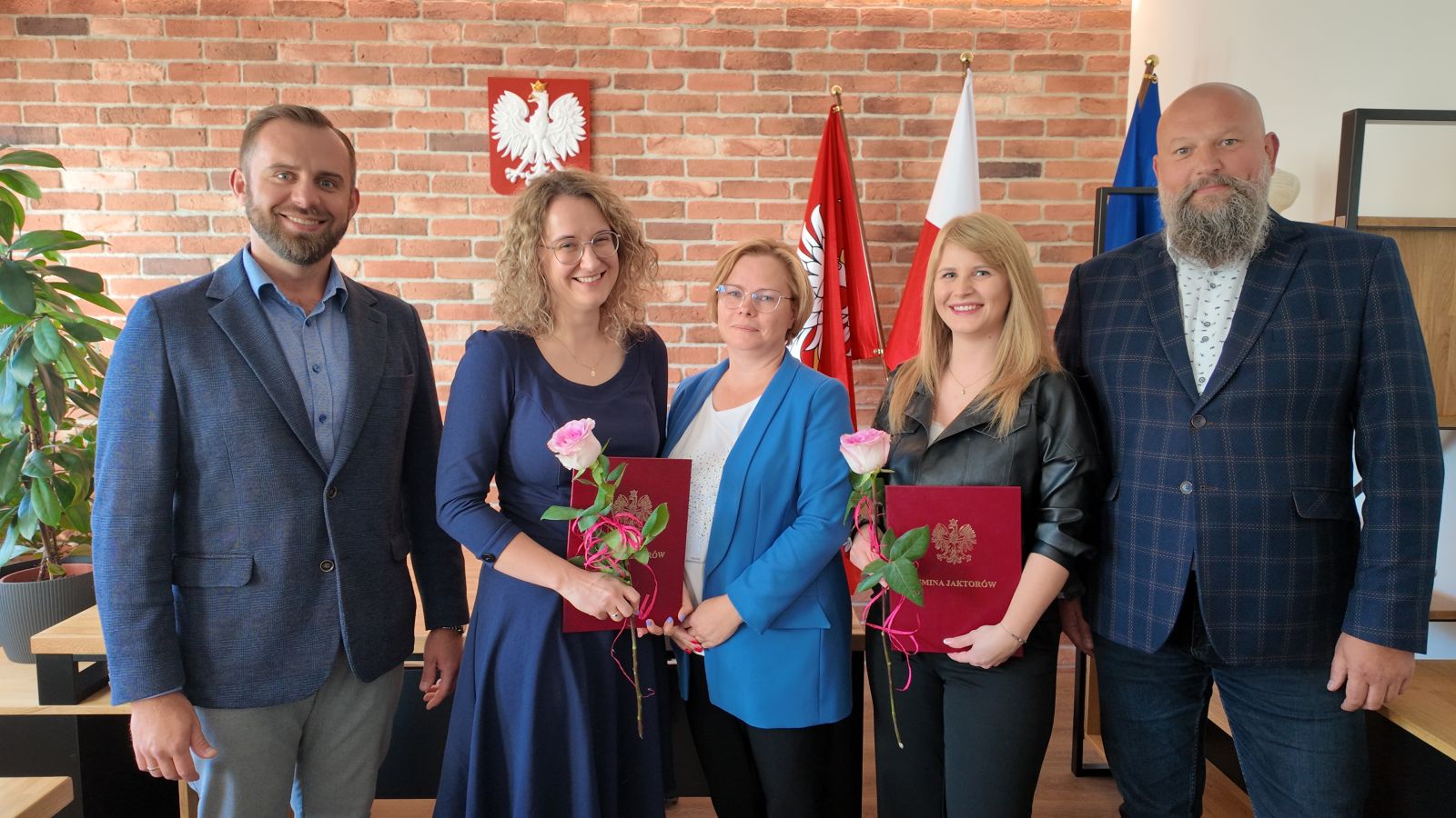 27 sierpnia 2025 r., Wójt Gminy Jaktorów Rafał Drązikowski, w obecności Dyrektora Szkoły p. Marcina Gorgola-Chmielewskiego, wręczył akty mianowania dwóm nauczycielkom z Zespołu Szkolno-Przedszkolnego w Jaktorowie: p. Marii Pietraszek i p. Elizie Sztejnie. Ten wyjątkowy moment w ich karierze zawodowej to efekt lat ich pracy, rozwoju i szczególnego zaangażowania w wykonywanie obowiązków zawodowych, co obydwie Panie potwierdziły prezentując swój dorobek zawodowy i zdając egzamin. Stopień nauczyciela mianowanego otwiera przed nimi nowe możliwości zawodowe i stanowi ważny wkład w rozwój systemu edukacji. Serdecznie gratulujemy Paniom uzyskania zasłużonego awansu zawodowego!