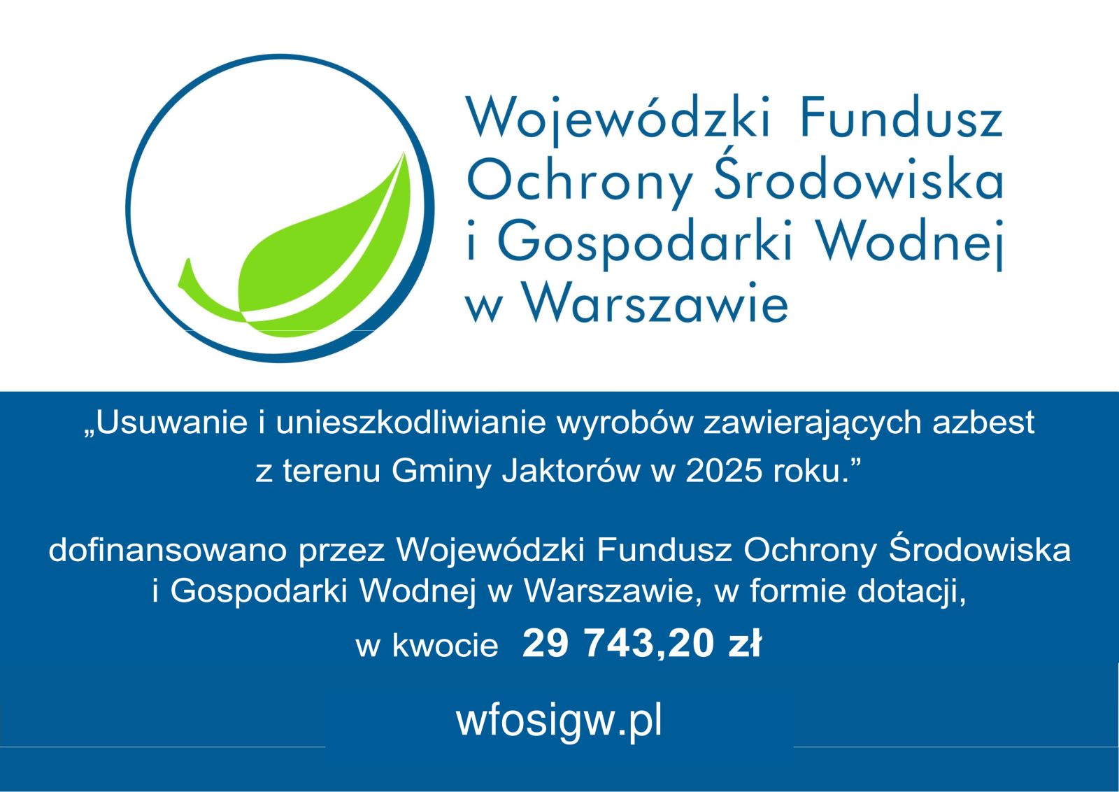 na „Usuwanie i unieszkodliwianie wyrobów zawierających azbest z terenu Gminy Jaktorów w 2025 roku.”