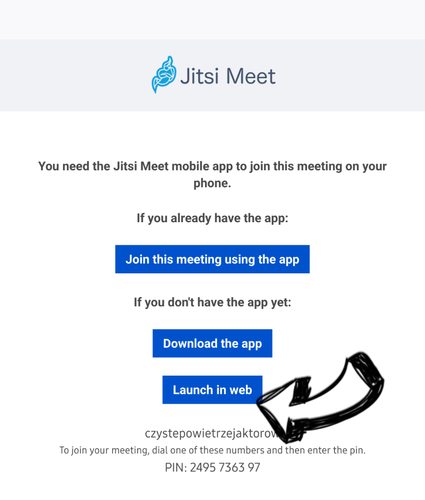 Na urządzeniach mobilnych proszę wybrać opcję otwarcia konferencji w przegladarce, zgodnie z obrazkiem poniżej.