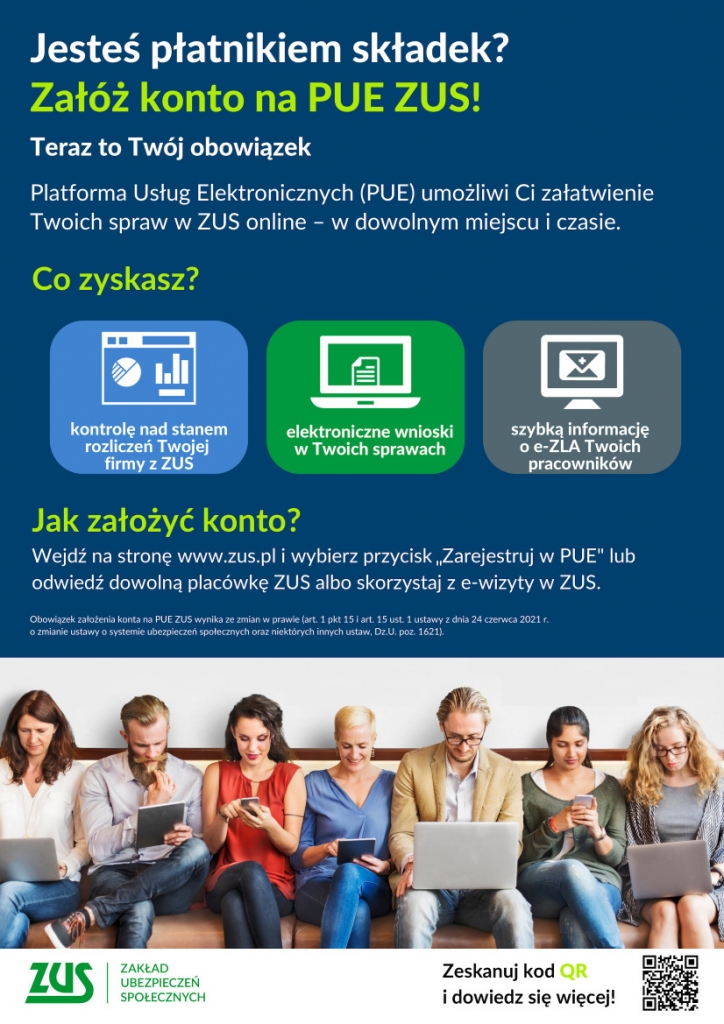 Od 1 stycznia 2023r. każdy, kto jest płatnikiem składek ma obowiązek posiadania profilu na Platformie Usług Elektronicznych (PUE) ZUS